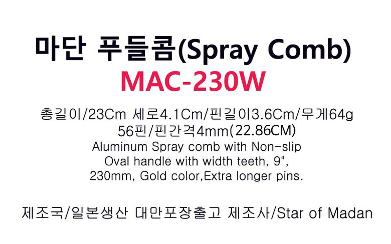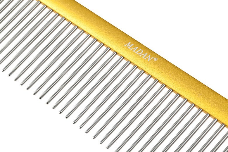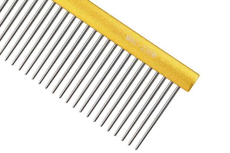 Aluminum Spray comb with Non-slip Oval handle with width teeth, 9", 230mm, Gold color,Extra longer pins.
