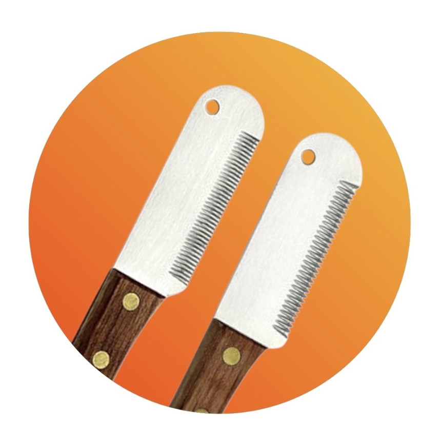 Curved blade, Stainless steel Coarse 14 teeth with Purple rubber handle.