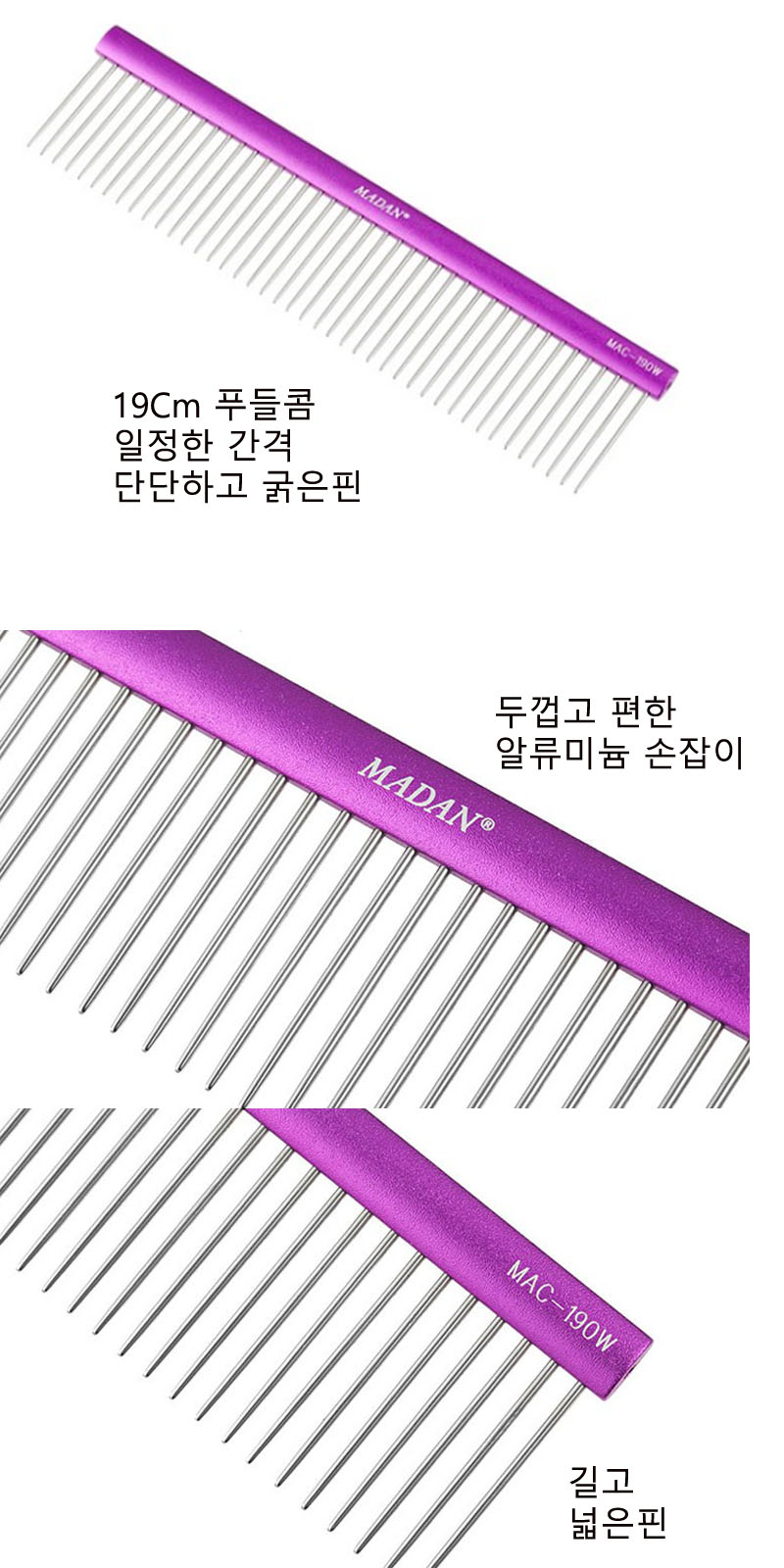Aluminum comb, Non- Slippery Oval handle, 7.5", 190mm, Extra Longer pins 34mm with 42 width Matted Pink, Matted Purple, Matted Orange, Matted Gold. Good to use for spray comb.